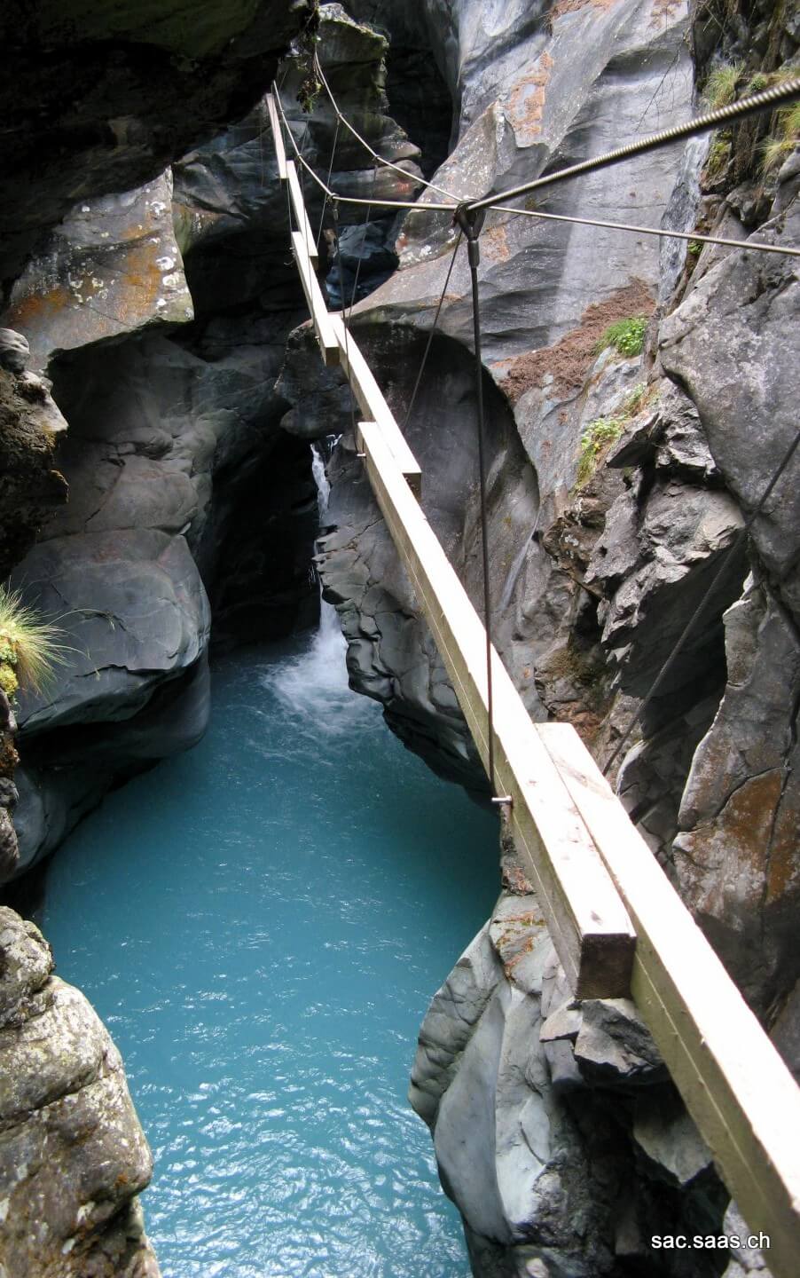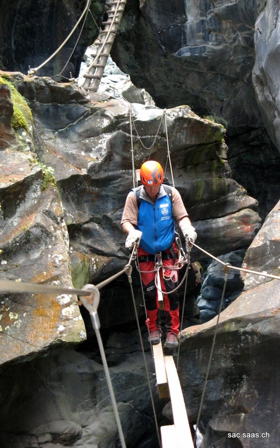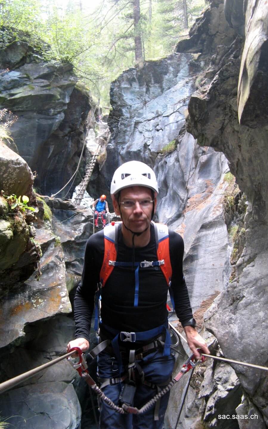 Die Schweiz war lange in Sachen Klettersteige ein «Entwicklungsland». Dann ab 1995 ging es schnell. Aktuell da 100 Steige. Davon 3 der besonderen Art. George Alpine Saas-Fee, Bietschischlucht und Gornerschlucht Zermatt. So genannte dynamische Klettersteige.