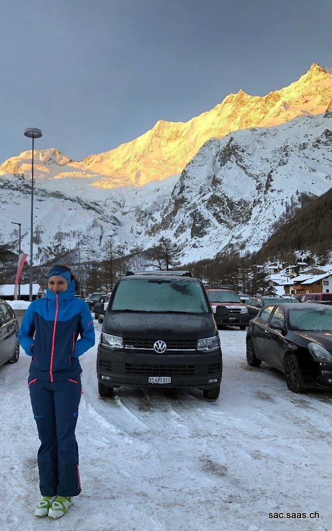 Die Sonne verschwand hinter dem Berggipfel und wir machten uns auf den Rückweg Richtung Morenia. Unterwegs gab uns unser Tourenleiter Gabi noch ein Paar Tipps zur perfekten Spitzkehre. Im Restaurant angekommen, genossen wir noch einen heissen Kaffee, bevor wir uns auf die Abfahrt hinunter nach Saas Fee machten.