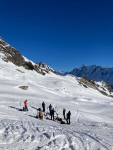 3×3, Handhabung LVS und weitere Themen wurden besprochen. Am späteren Vormittag waren wir dann durch mit Theorie und gingen ins Gelände. Dort wendeten wir das vorher gelernte/repetierte an.