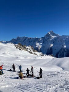 Nach Begrüssung unseres Bergführers Noah Kreuzer fuhren wir mit der Bahn hoch und starteten mit Kaffee+Theorie im Restaurant.