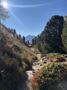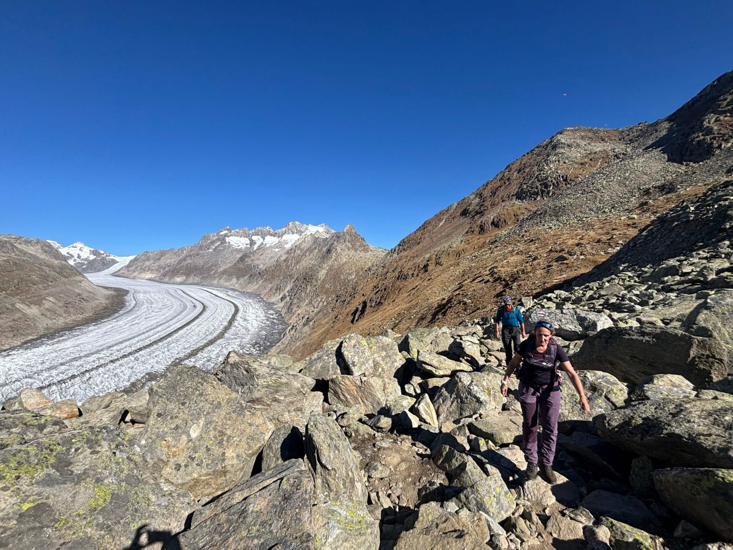 Danach liefen wir entlang des Aletschgletschers bis zur Station unter dem Bettmerhorn, wobei wir immer wiede kurze Pausen machten, um die Gegend und die wunderschönen Herbstfarben zu bestaunen. Natürlich wurden auch viele Fotos geschossen.