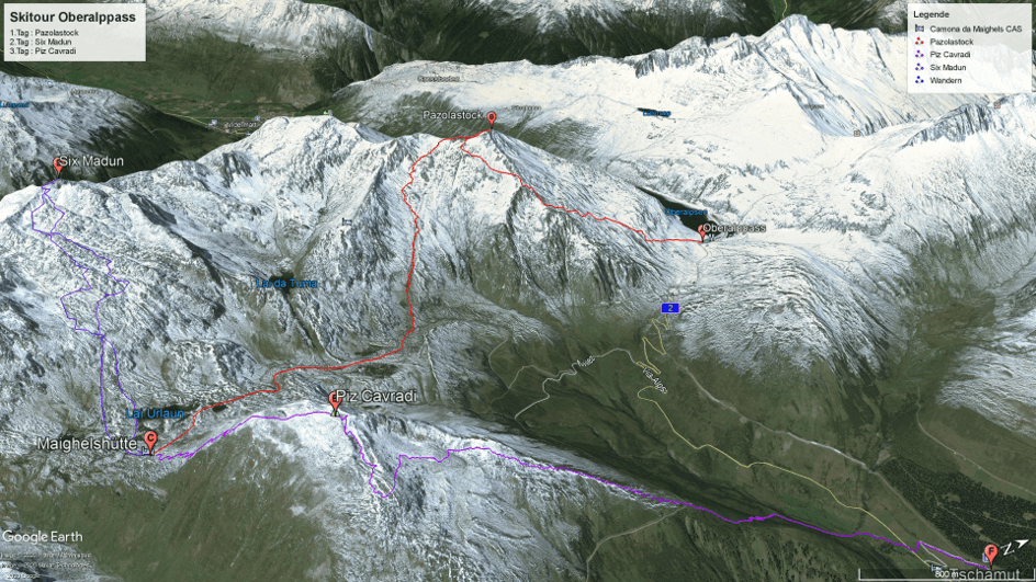 Maighelshütte – Piz Badus/Six Madun – Maighelshütte – Piz Cavradi – Tschamut
