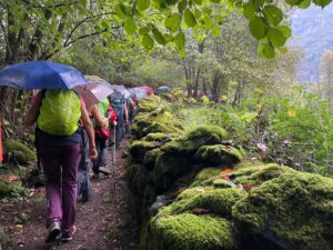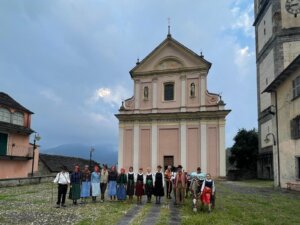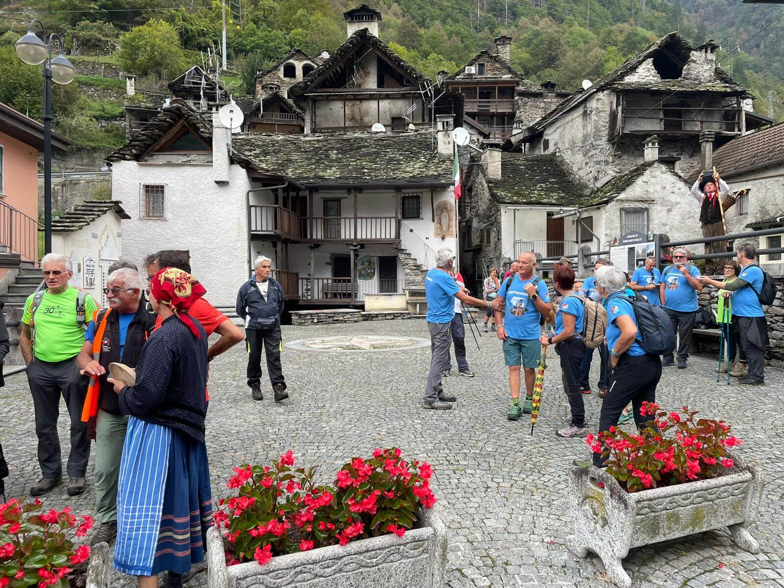 Von Villadossola aus setzten wir unsere Wanderung auf dem historischen Weg nach Montescheno (Cresti) fort. Hier legten wir den ersten Halt ein und wurden mit Kaffee und Kuchen verwöhnt. Kurz darauf verschlechterte sich das Wetter, und die ersten Regentropfen begleiteten uns.