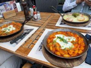 In der Dorfmitte durfte der SAC Saas beim gemeinsamen Mittagessen sein Geschenk mit Walliser Spezialitäten an unsere lieben Freunde des CAI überreichen.