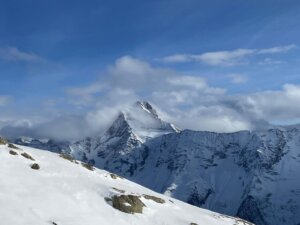 Auf der Lauchernalp haben wir bei Kaffee und Gipfeli die Lawinenkunde in der Theorie besprochen und uns gegen 10:30 Uhr Richtung Hockenhorngrat auf den Weg gemacht. Von dort aus sind wir am Fusse des Hockenhorns Richtung Lötschenpasshütte mit den Tourenskiern gelaufen.