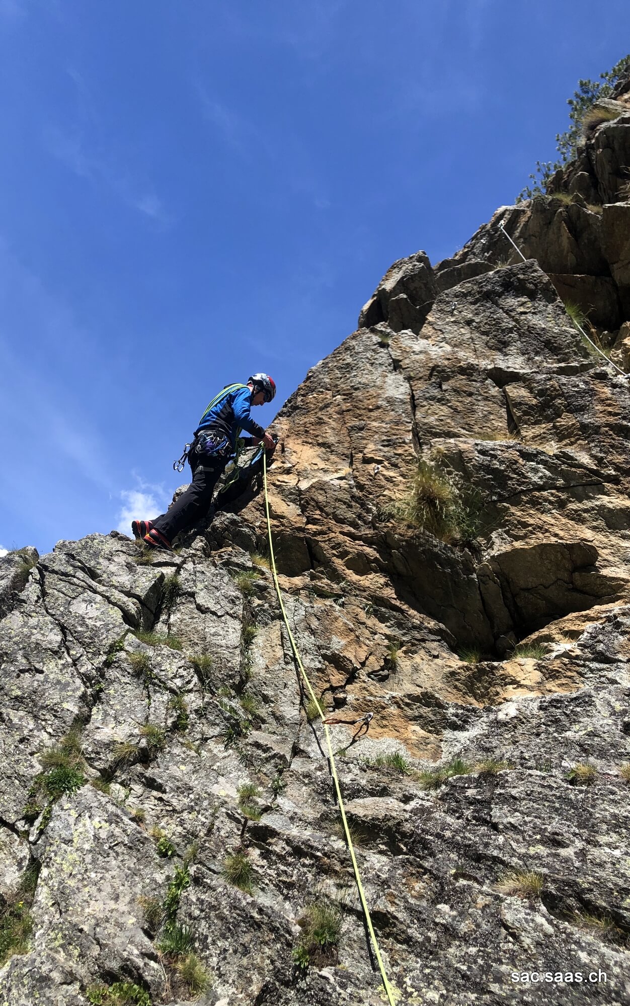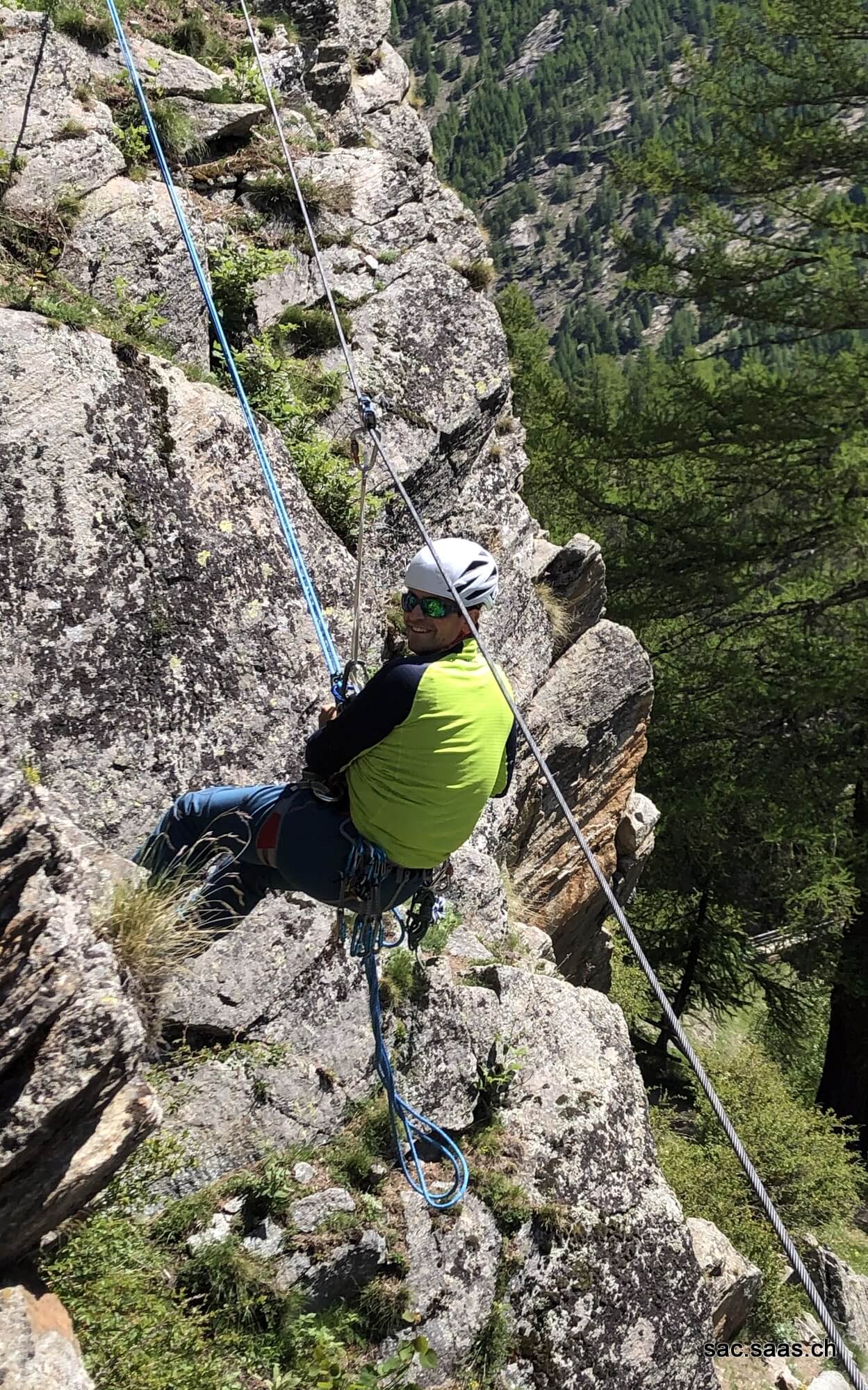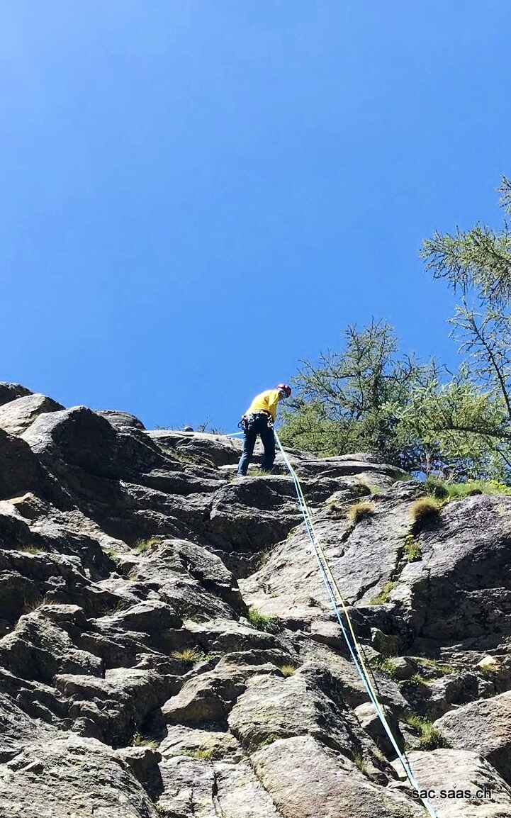 Wir; Vedrana Ilijevski, Marc Briggeler, Alessandro Marino und Eelco Jansen trafen uns um 08:30 im Parkhaus Saas-Fee. Gabriel lud uns zu ihm nach Hause ein, da es am Morgen doch noch ein wenig frisch war in Saas-Fee. Nach 2 Stunden Theorie verschoben wir uns zum Klettergarten „Zur hohen Stiege“ wo wir ein paar Szenarien üben konnten. Am Ende noch einen langen Abseil von fast 35 Meter und schon war der Kurs nach 4:30 Stunden bereits wieder vorbei, damit am Nachmittag noch 4 weitere Tourenleiter den Kurs machen können. Trotzdem wieder vieles mitgenommen und froh, dass wir trotz Versammlungsverbot von mehr als 5 Personen, unseren jährlich wiederkehrenden Kurs, haben absolvieren können. Danke SAC SAAS