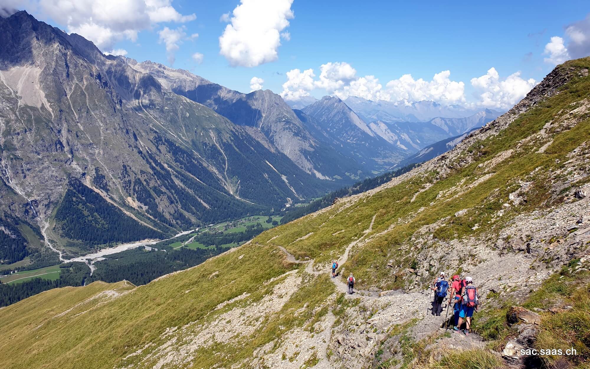 Begleitet von den Teilnehmer/innen des UTMB (Ultra Trail Mont Blanc → 170km) starteten wir noch zu viert in La Fouly (1594m) zu unserer letzten Etappe nach Champex. Vorerst ging es während 2 Stunden immer leicht fallen der Dranse d’Ferret entlang hinunter zum Weiler Issert (1949m), ein sehenswerter schöner Ort, wo wir gleich den 1. Halt machten. Anschliessend folgte nun der letzte Aufstieg hoch nach Champex (1468m), der von uns noch einiges abverlangte. Die Freude war gross, als wir nach weiteren 2 Stunden unser Tagesziel erreichten und somit eine weitere erfolgreiche und unfallfreie Wanderwoche mit einem grossen Glas Bier abschliessen konnten. (Toni)