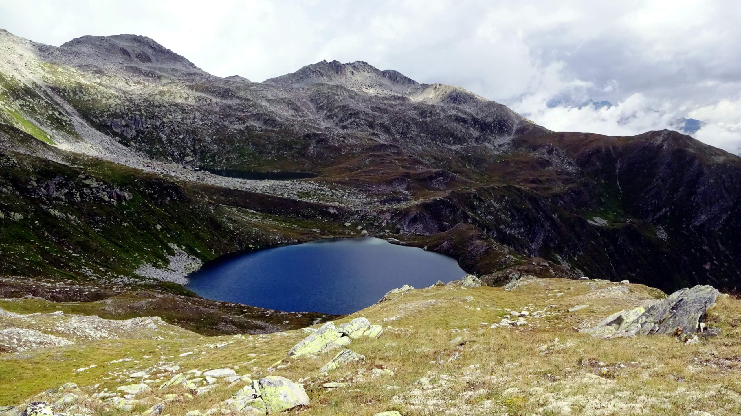 Em Morge em 9i uf der Grimsel: da sieht ma nix! Purer Nebel erwartet uns aber noch sind keine Zweifel am Vorhaben geweckt. Munter geht’s in die Beiz und schon bald danach lichtet sich der Nebel. Der Wind jedoch ist gekommen, um zu bleiben. Kopfbedeckt legt’s sich los. Trotzdem immer wieder verblüffend, wie sich die Hände im Wind rasch kühlen während man trotz kurzen Hosen an den Beinen wenig Kälte spürt. Die Wahnsinnshitze der letzten Tage – vergessen. Schwitzlos absolvieren wir die flotte 9-Seen Wanderung: Totesee, Jostsee, Lengsee, Rundsee, Üelisee, Obersts Seewji, Namenloses Seewji, Mittelsee, bis zum Trützisee.