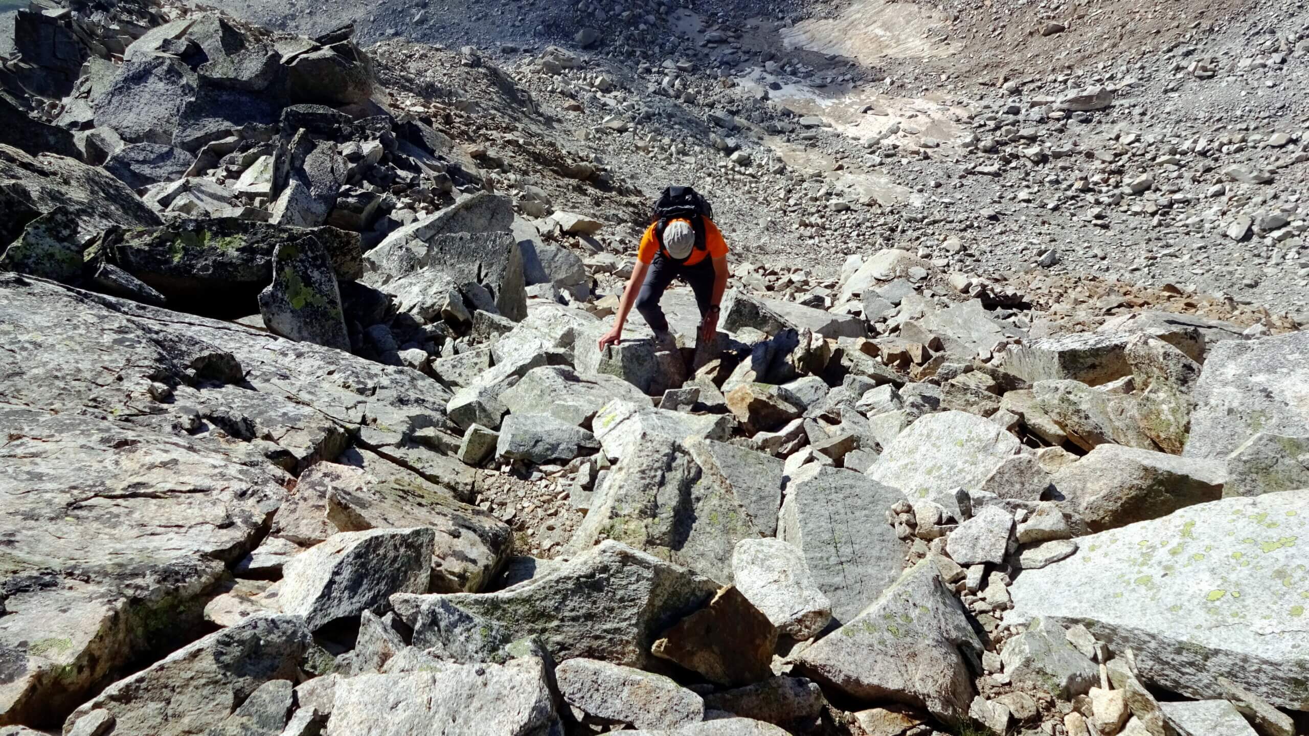 Zurück in der Realität und beim Trützisee, beschweren wir uns mit den Biwaksachen, leeren den Sack Basler Leckerli und machen uns an den Abstieg in die erbarmlose Hitze im Tal. Wärme und Kälte, liegen sie doch nahe beieinander.