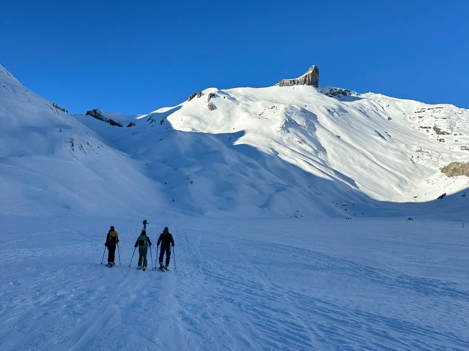 Durch das Abschmelzen des Firnfeldes am Wandfuss musste der Steig nach unten verlängert werden. Zudem wurden schadhafte Haken, Fixierungen etc. ersetzt. Lockere Steine wurden entfernt.
